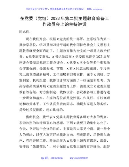 / 在2023年第二批主题教育筹备工作动员会上的主持讲话