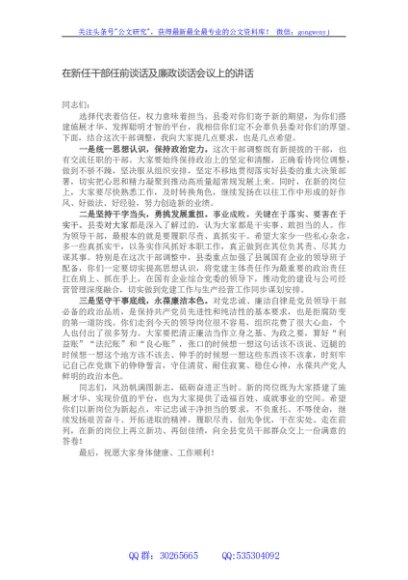 / 在新任干部任前谈话及廉政谈话会议上的讲话