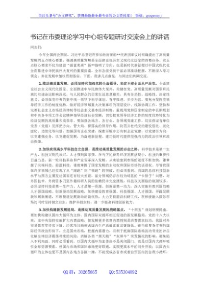 / 书记在市委理论学习中心组专题研讨交流会上的讲话