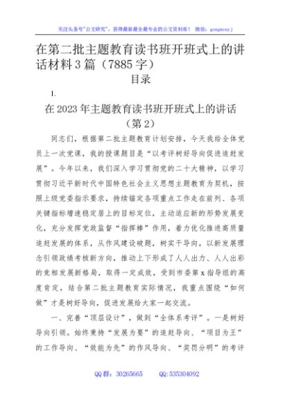 / 在第二批主题教育读书班开班式上的讲话材料3篇
