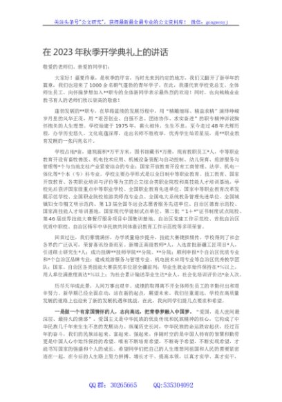 / 在2023年秋季开学典礼上的讲话
