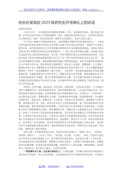 / 校长在某高校2023级研究生开学典礼上的讲话