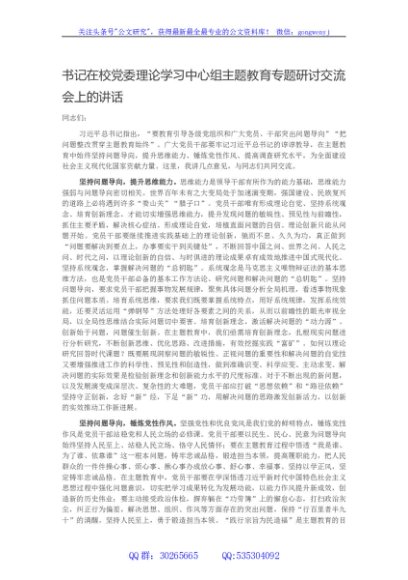 / 书记在校党委理论学习中心组主题教育专题研讨交流会上的讲话