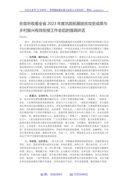 / 在收听收看全省2023年度巩固拓展脱贫攻坚成果与乡村振兴有效衔接工作会后的强调讲话