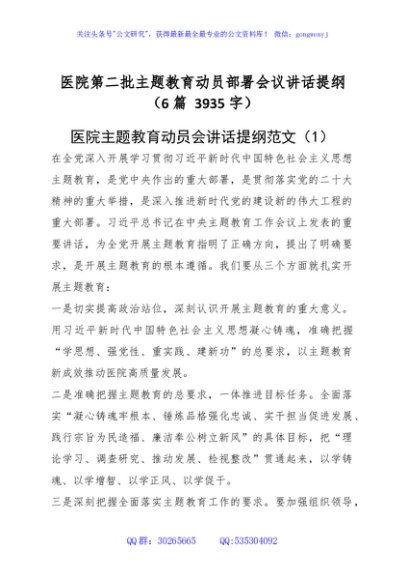 / 医院第二批主题教育动员部署会议讲话提纲6篇