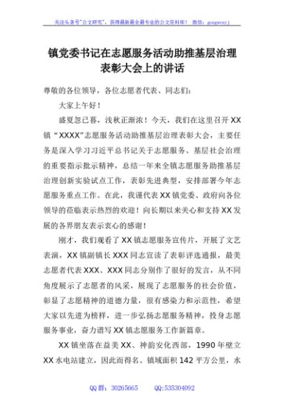 / 镇党委书记在志愿服务活动助推基层治理表彰大会上的讲话