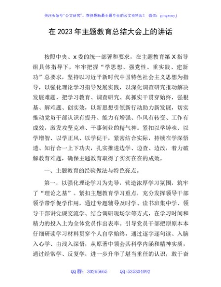 / (收官)2023年主题教育总结大会上的讲话