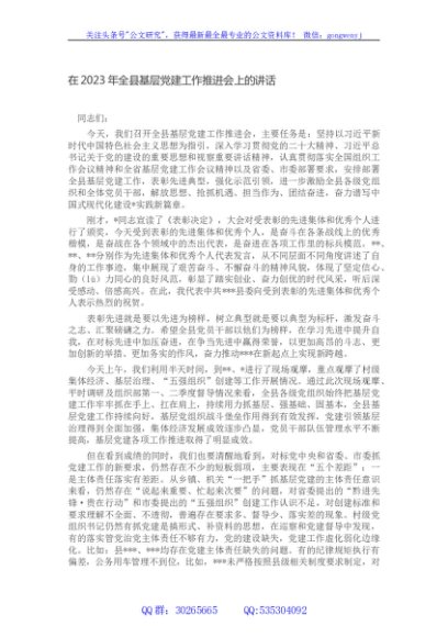 / 在2023年全县基层党建工作推进会上的讲话