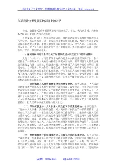 / 在某县政协委员履职培训班上的讲话