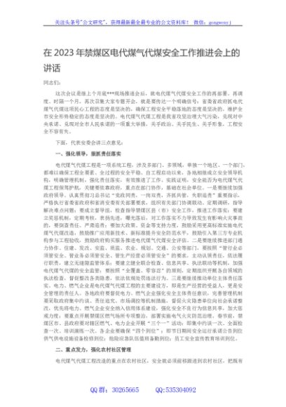 / 在2023年禁煤区电代煤气代煤安全工作推进会上的讲话