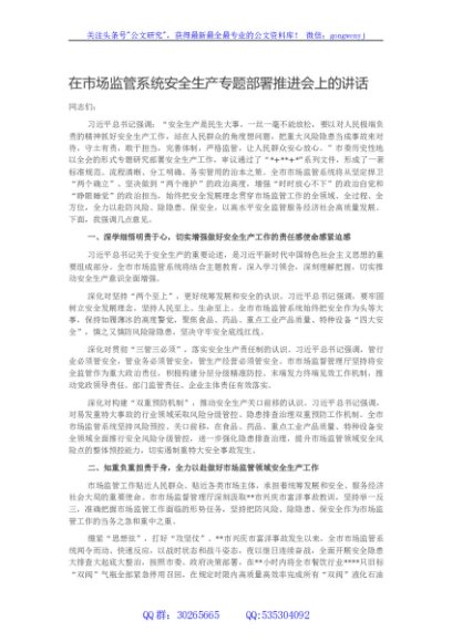 / 在市场监管系统安全生产专题部署推进会上的讲话