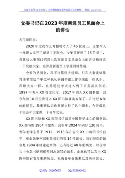 / 党委书记在2023年度新进员工见面会上的讲话