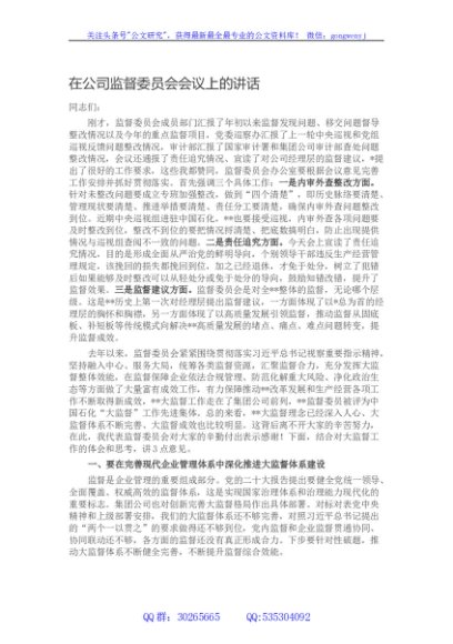 / 在公司监督委员会会议上的讲话