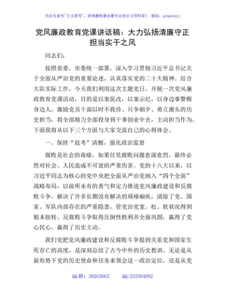 / 党风廉政教育党课讲话:大力弘扬清廉守正担当实干之风2400字
