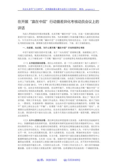 / 在开展赢在中层行动暨差异化考核动员会议上的讲话