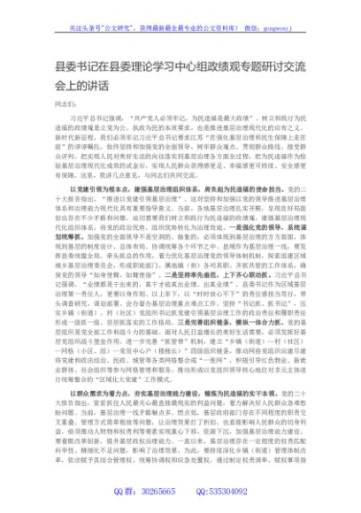 / 县委书记在县委理论学习中心组政绩观专题研讨交流会上的讲话