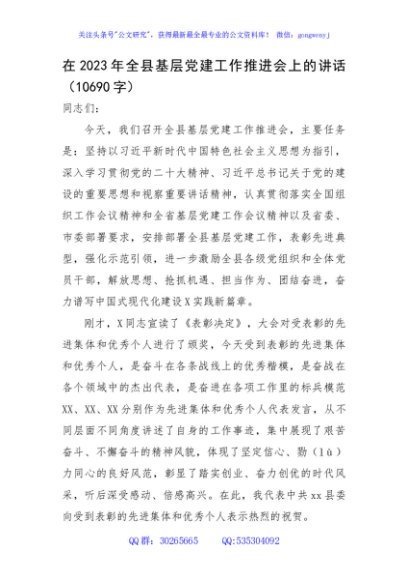/ 在2023年全县基层党建工作推进会上的讲话