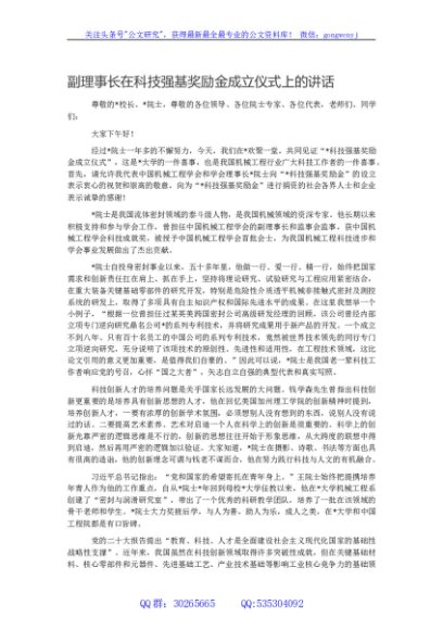 / 副理事长在科技强基奖励金成立仪式上的讲话
