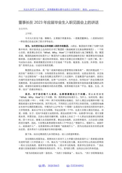 / 董事长在2023年应届毕业生入职见面会上的讲话