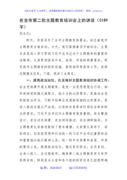 / 在全市第二批主题教育培训会上的讲话