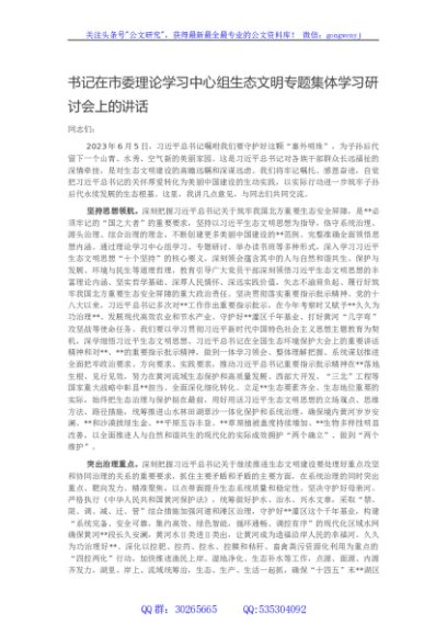 / 书记在市委理论学习中心组生态文明专题集体学习研讨会上的讲话