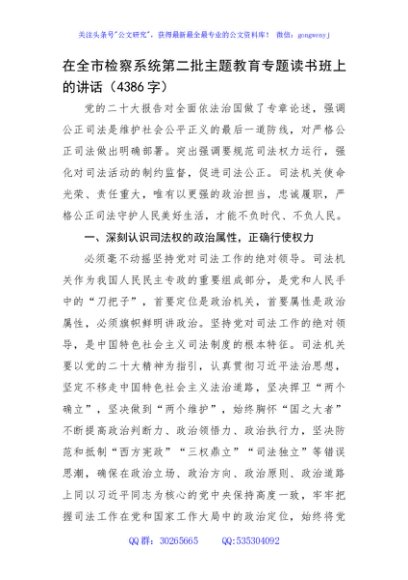 / 在全市检察系统第二批主题教育专题读书班上的讲话