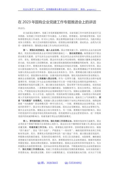 / 在2023年国有企业党建工作专题推进会上的讲话