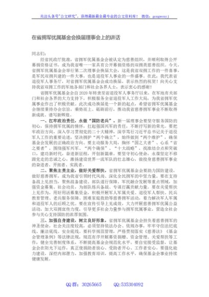 / 在省拥军优属基金会换届理事会上的讲话