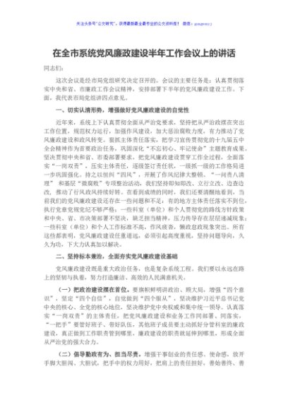 / 在全市系统党风廉政建设半年工作会议上的讲话