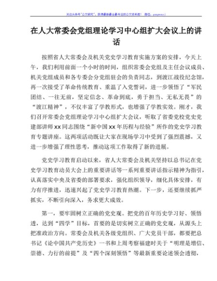 / 在人大常委会党组理论学习中心组扩大会议上的讲话(范文)