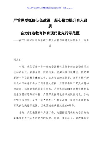 / 在2021年×区教体系统干部大会暨作风建设动员会议上的讲话