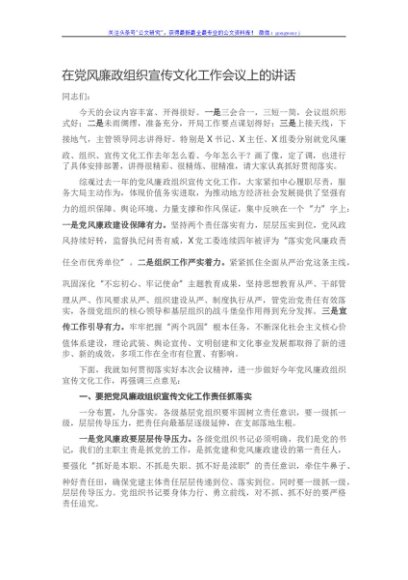 / 在党风廉政组织宣传文化工作会议上的讲话
