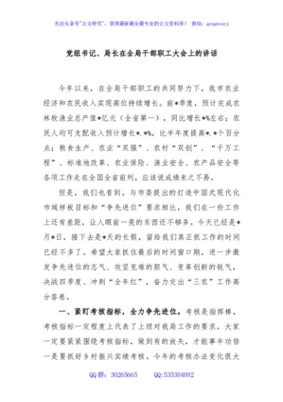 / 党组书记、局长在全局干部职工大会上的讲话