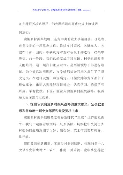 / 在乡村振兴战略领导干部专题培训班开班仪式上的讲话