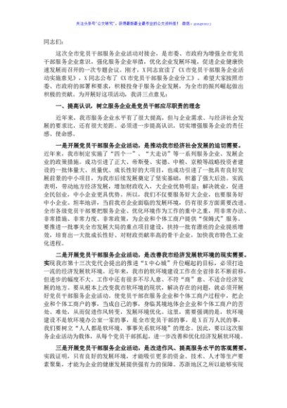 / 在全市党员干部服务企业活动对接会议的讲话
