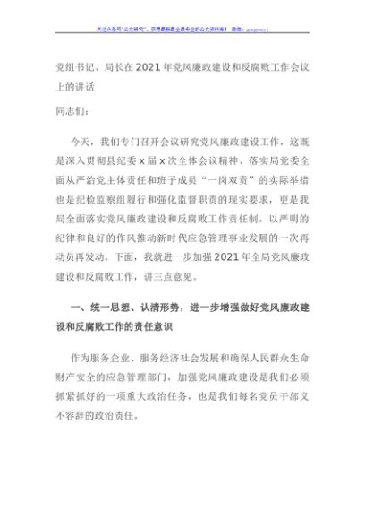 / 党组书记、局长在2021年党风廉政建设和反腐败工作会议上的讲话