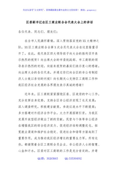 / 区委副书记在区工商业联合会代表大会上的讲话