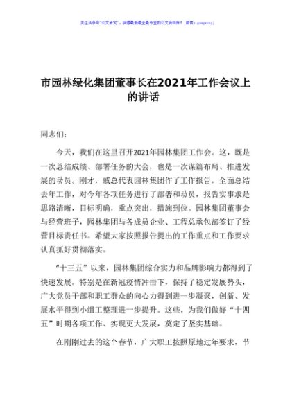 / 市园林绿化集团董事长在2021年工作会议上的讲话
