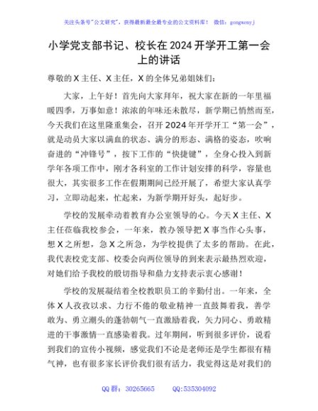 / 小学学校校长在2024开学开工第一会上的讲话