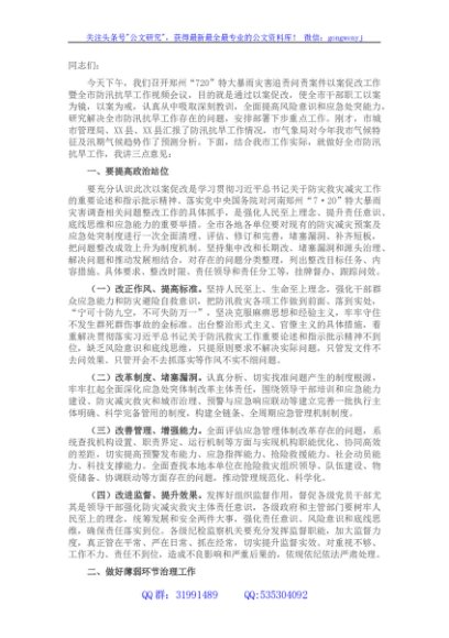 / 在郑州“7.20”特大暴雨灾害追责问责案件以案促改工作暨全市防汛抗旱工作视频会议上的讲话