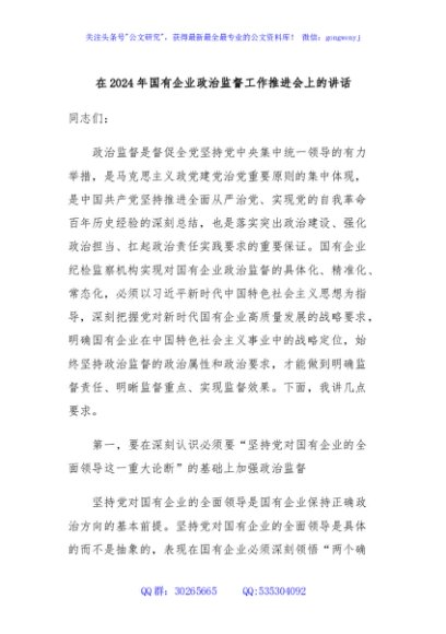 / 在2024年国有企业政治监督工作推进会上的讲话