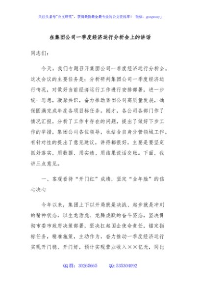 / 在集团公司一季度经济运行分析会上的讲话