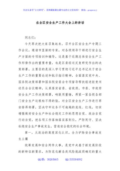 / 在全区安全生产工作大会上的讲话