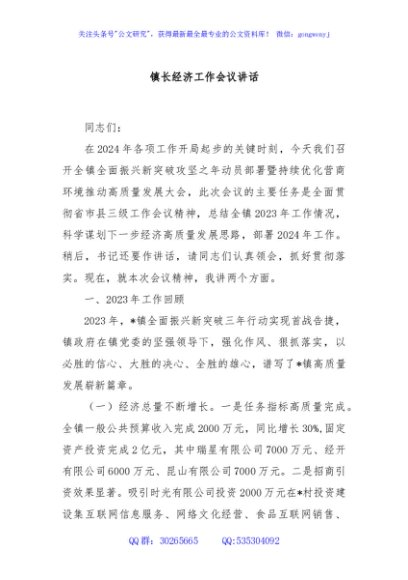 / 镇长经济工作会议讲话