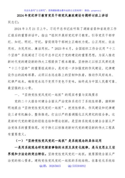 / 2024年党纪学习教育党员干部党风廉政建设专题研讨班上讲话