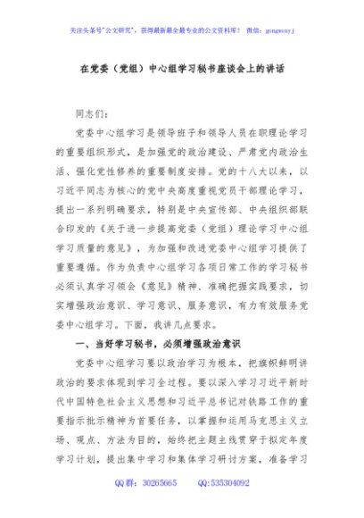 / 在党委(党组)中心组学习秘书座谈会上的讲话