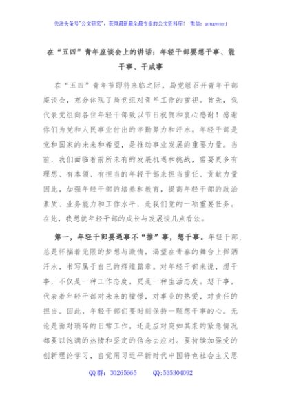 在“五四”青年座谈会上的讲话:年轻干部要想干事、能干事、干成事