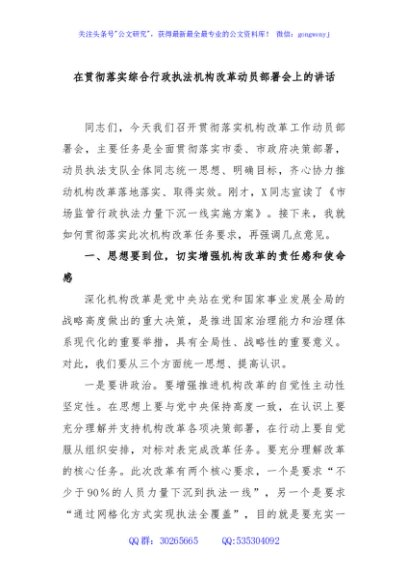 / 在贯彻落实综合行政执法机构改革动员部署会上的讲话