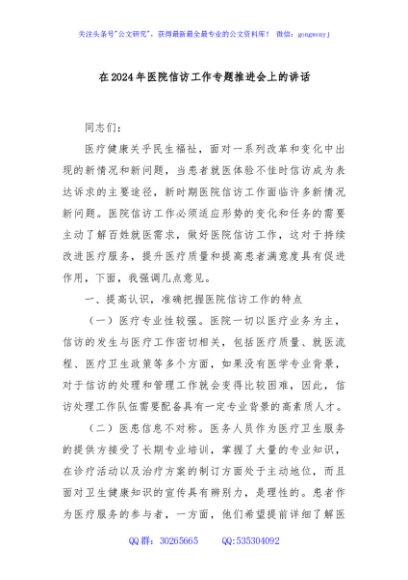 / 在2024年医院信访工作专题推进会上的讲话
