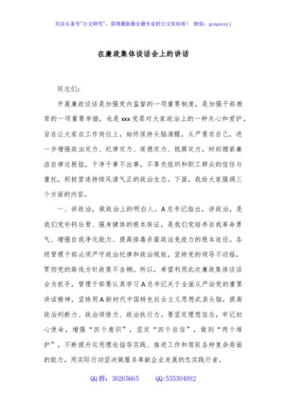 / 在廉政集体谈话会上的讲话